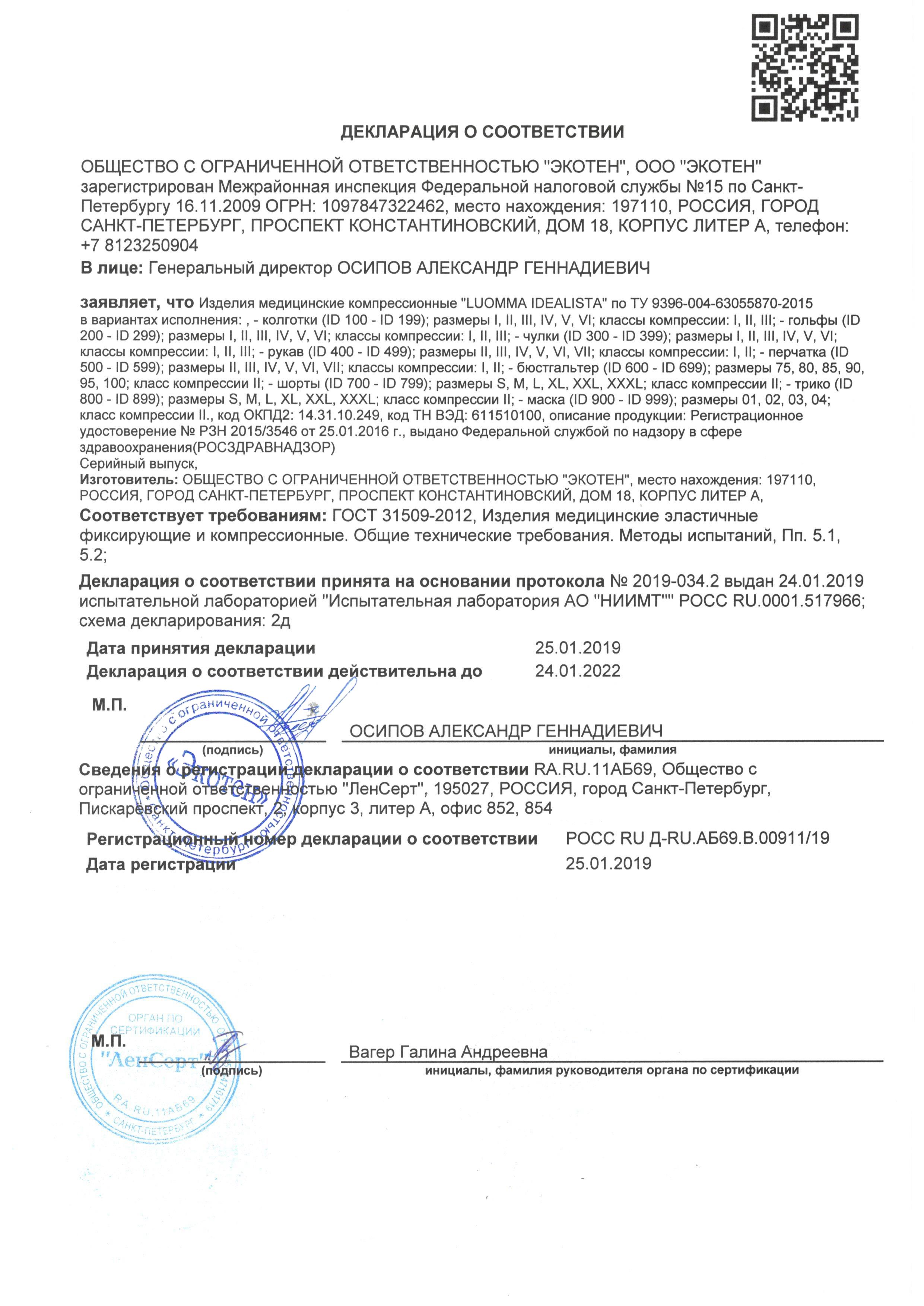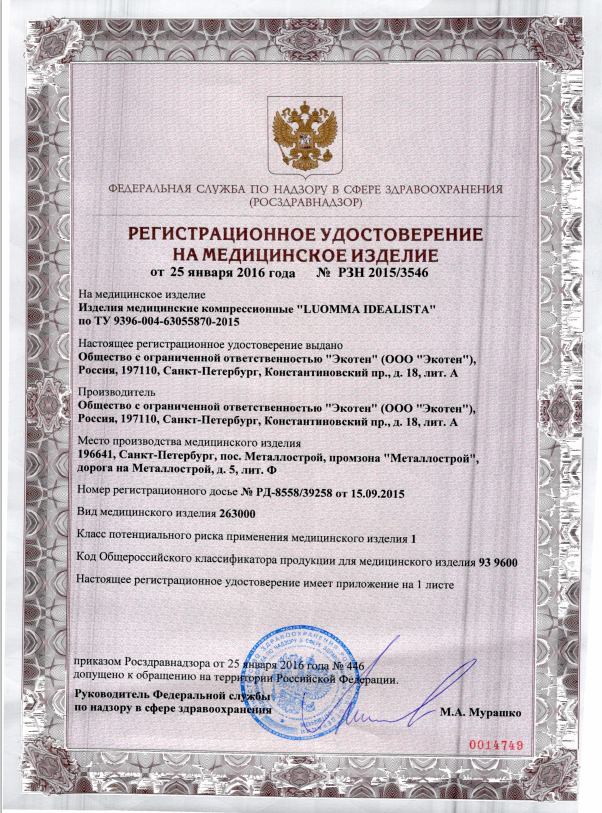 | Класс компрессии | 1 класс |