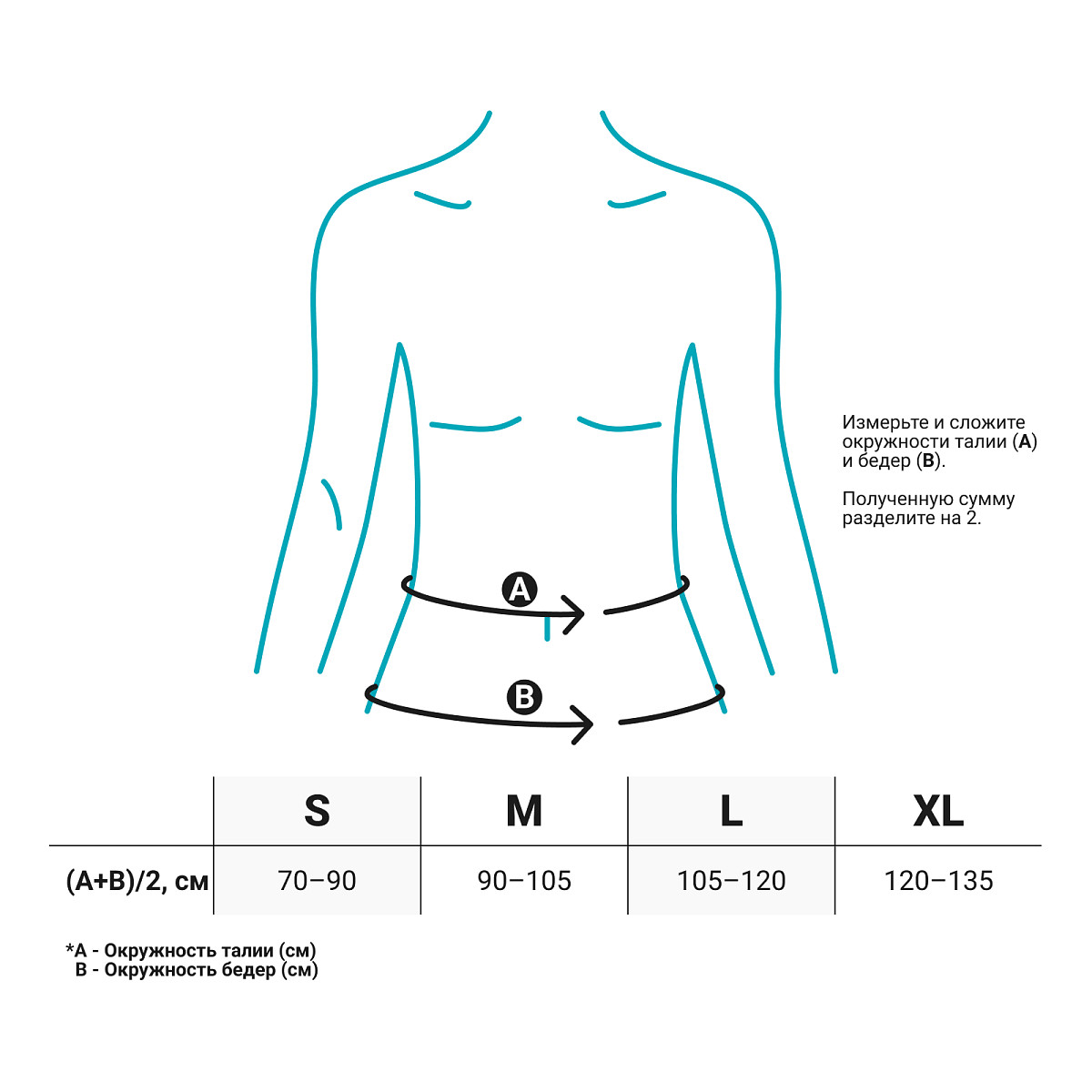 Для правильного выбора подходящего размера ортопедического грудопоясничного корсета Orlett LSO-991 необходимо сантиметровой лентой измерить окружность талии и бедер. Далее сумму этих окружностей поделить пополам и воспользоваться таблицей, представленной ниже:
