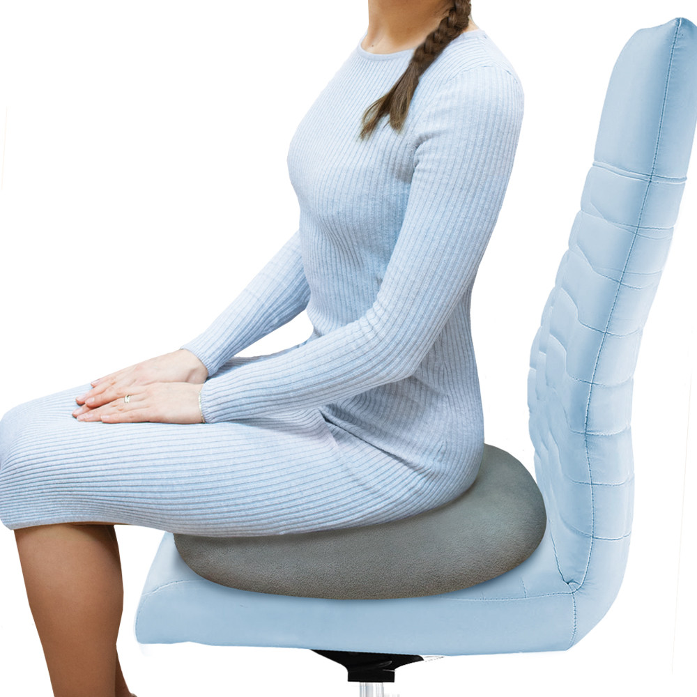 - Подушку размещают на сидении так, чтобы при посадке промежность и копчик располагались в отверстии подушки, а седалищные бугры размещались на валике подушки.