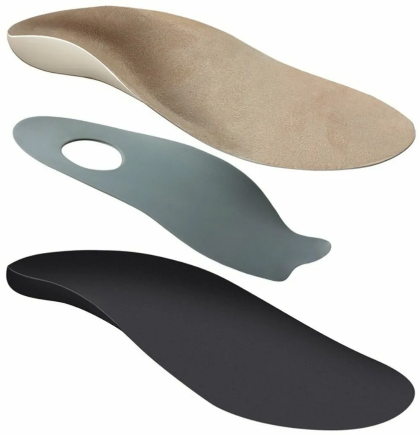 - вкладываются в закрытую обувь с высоким задником, фиксирующими элементами на подъеме (шнурки, велкро, пряжки) и каблуком до 2 см