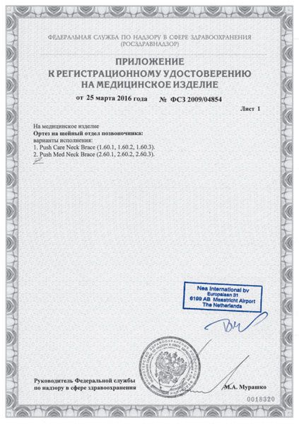 Назначения использования шейного ортеза Push care Neck Brace: